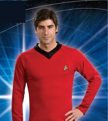 Classic Star Trek Top - Scotty is a red v-neck top with black neckline and Star Trek symbol .