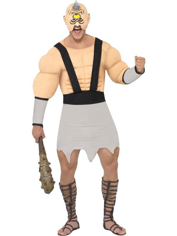The legendary Cyclops costumes consists of a tunic with attached muscle chest. To complete the Roman Greek look a Cyclops half mask is also included.