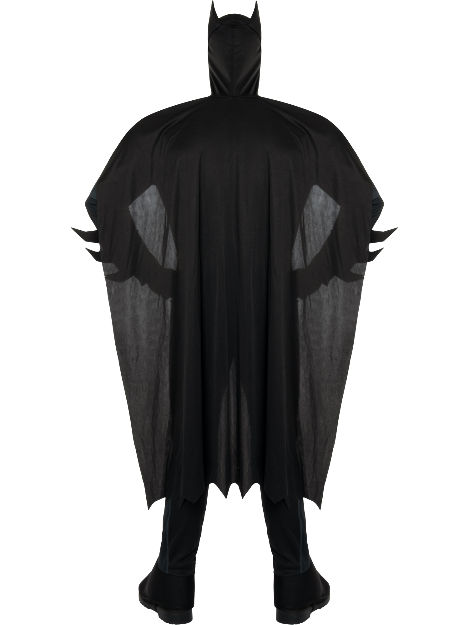 To complete the pictured look included with the costume is the Dark Knight's signature cape and a rubber Batman utility belt.
