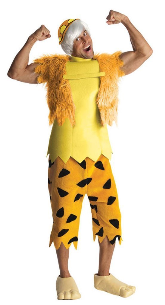The Flintstones Bamm Bamm costume includes a yellow top with attached faux fur waistcoat and a pair of three quarter length yellow and black trousers. This fully licensed costume also includes a white wig with attached hat.