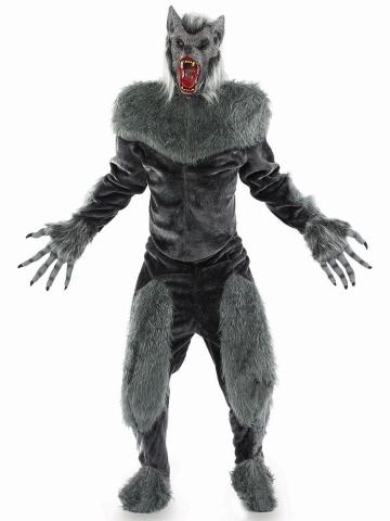 The full costume included a grey faux fur padded shirt and matching grey faux fur trousers. The realistic mask included with this costume features large ears with an open mouth and sharp teeth!
