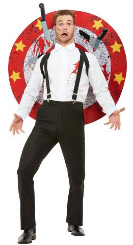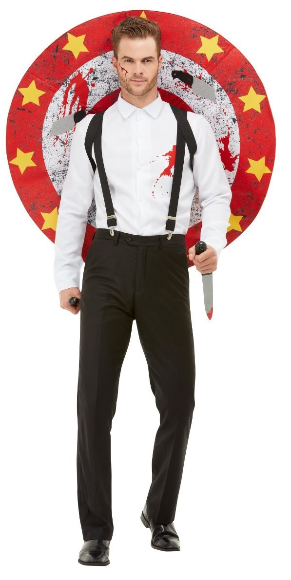 This show stopping costume includes a white shirt with faux blood stains and a pair of braces. To complete the look target board and velcro knives are also included.
