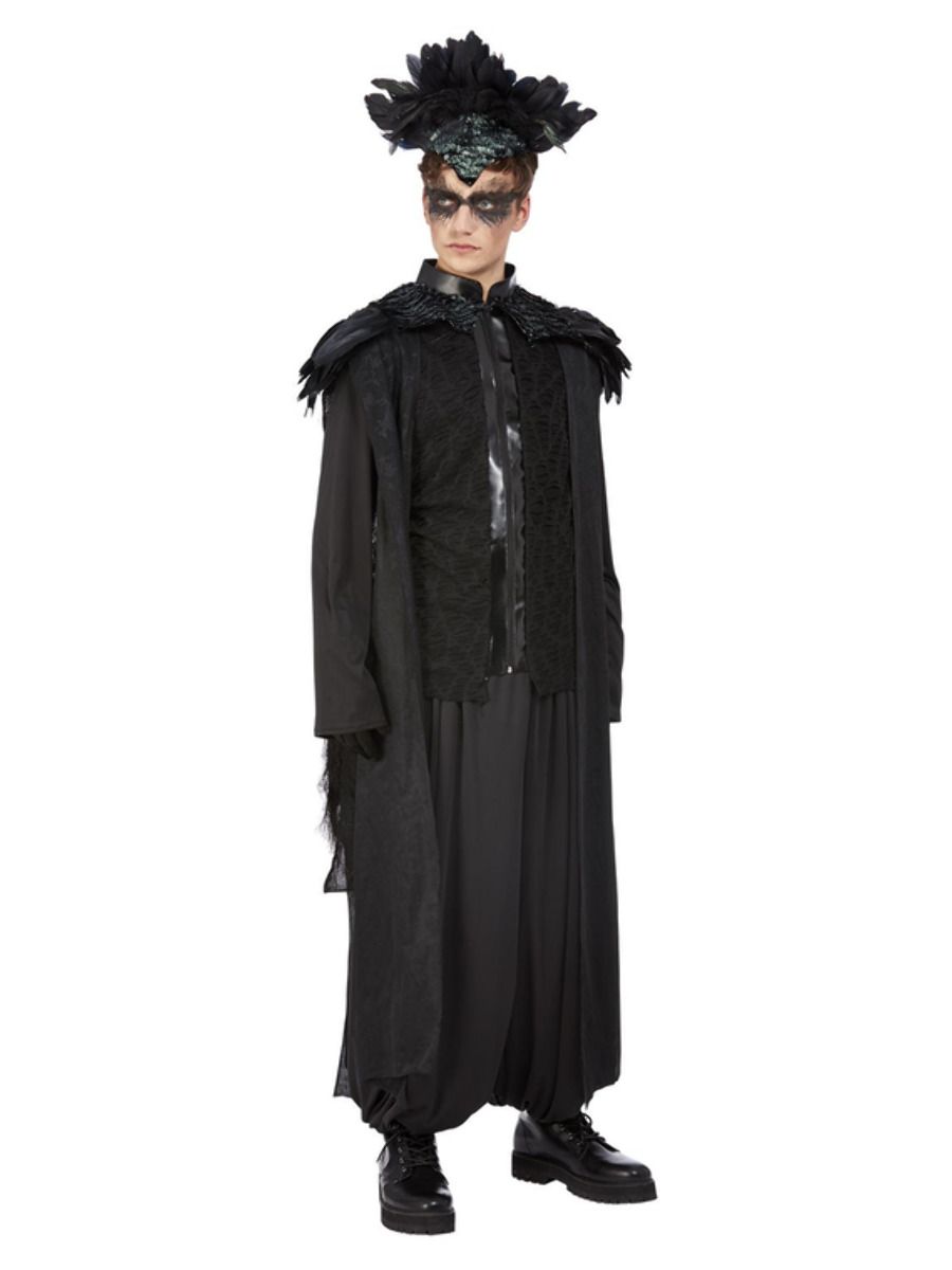Deluxe Raven King Costume includes, Black, Top, Cape, Trousers & Headpiece.