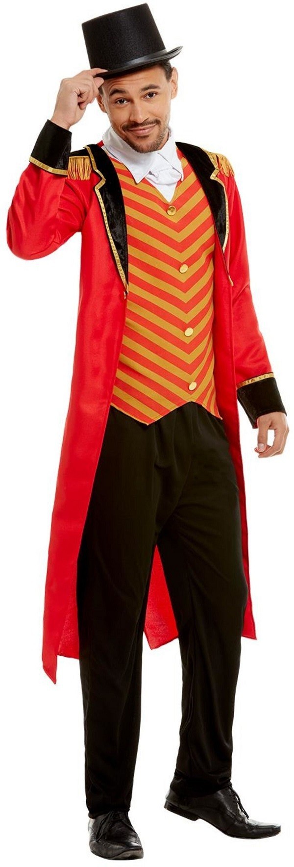 This is the Greatest Show and you can be apart of it with Our Deluxe Ringmaster Costume. This spectacular costume includes a long jacket with gold trim throughout and fringed epaulettes on the shoulders. The jacket also features an attached waistcoat and a shirt front.