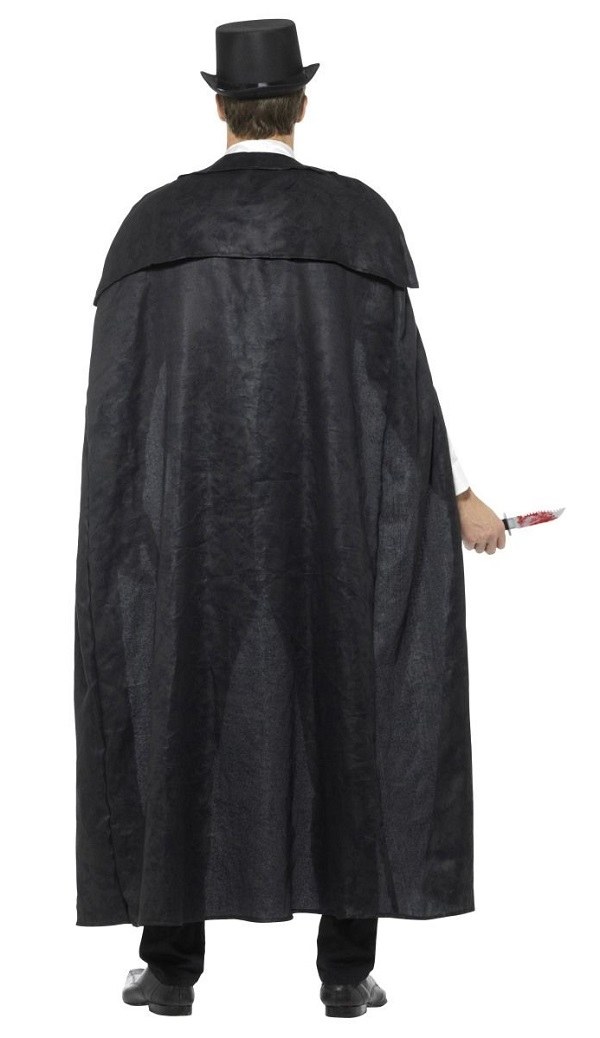 Deluxe Victorian Jack The Ripper Costume includes a brocade style waistcoat and a long black cape. Costume also includes a white cravat.