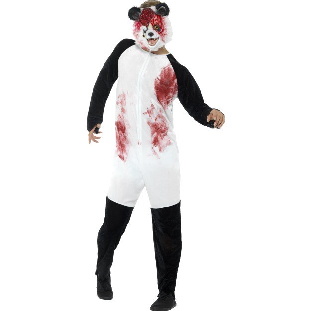 Deluxe Zombie Panda Costume includes a black and white jumpsuit with blood stains and an EVA face mask.