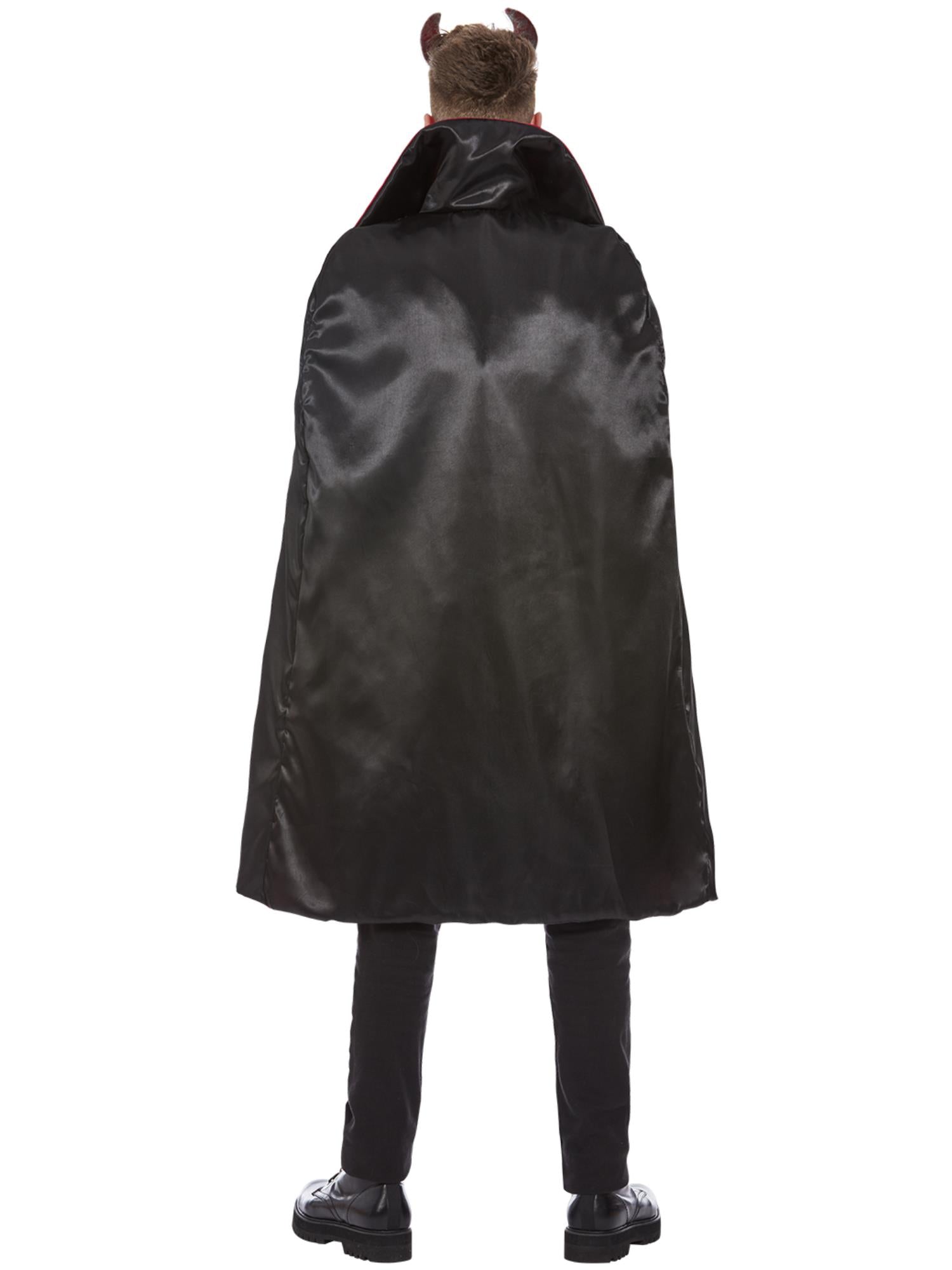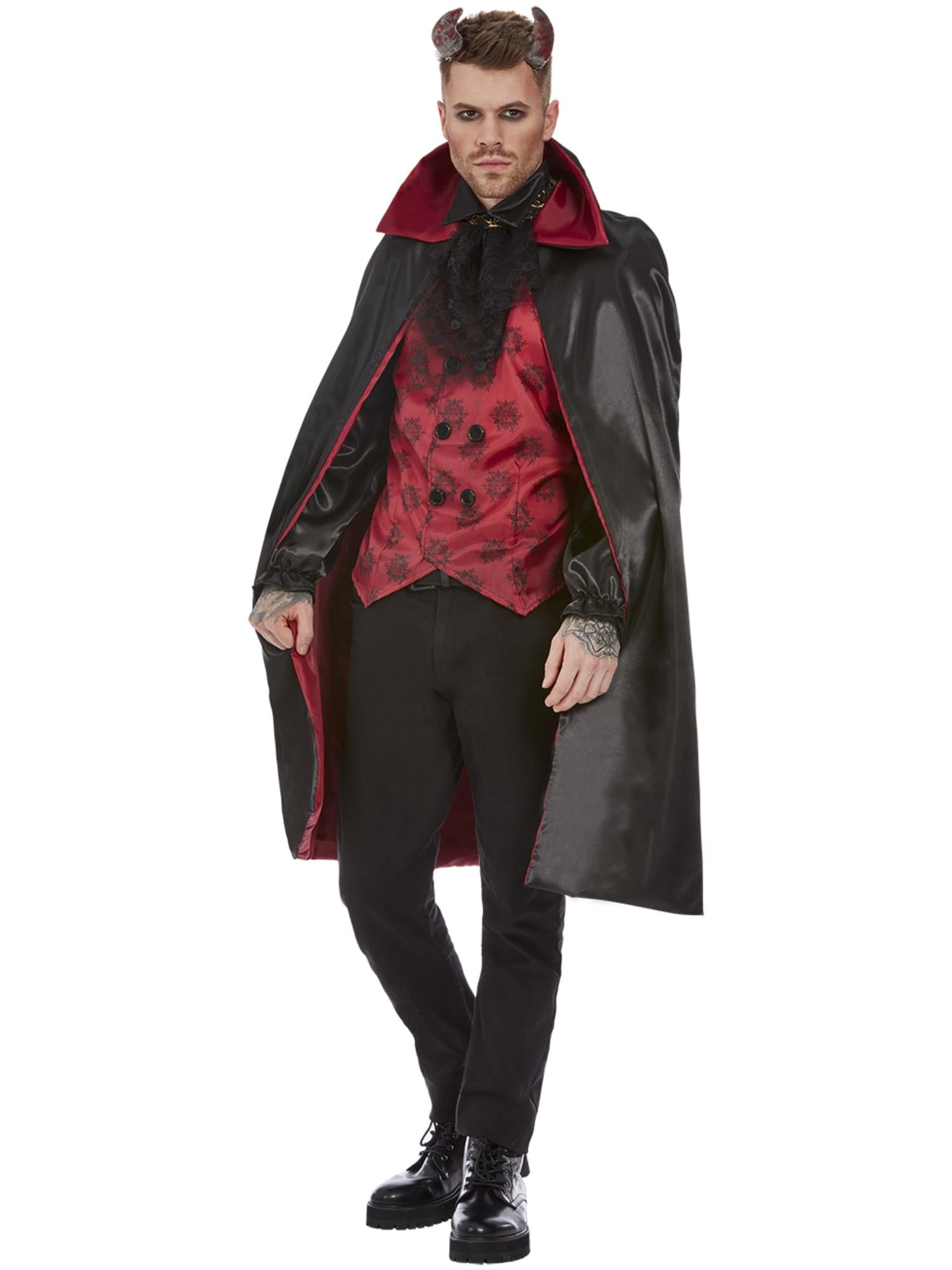 Devil Costume, Red & Black with Top, Cape, Cravat & Horns — for those evenings when behaving simply isn’t on the agenda.
