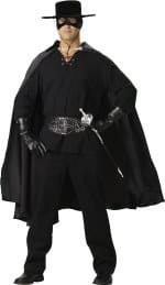 The Elite Quality Bandido Costume comes complete with a black long sleeved gauze shirt, a satin cape and matching velvet touch hat. The costume also includes matching studded belt, studded gloves, eye mask and a fencing sword to complete the look pictured.