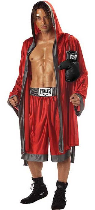 Everlast Boxer costume includes a red robe with grey trim, attached hood and an Everlast screen print on the back.