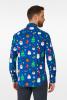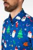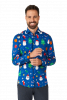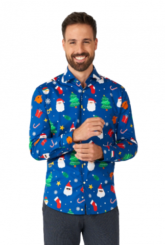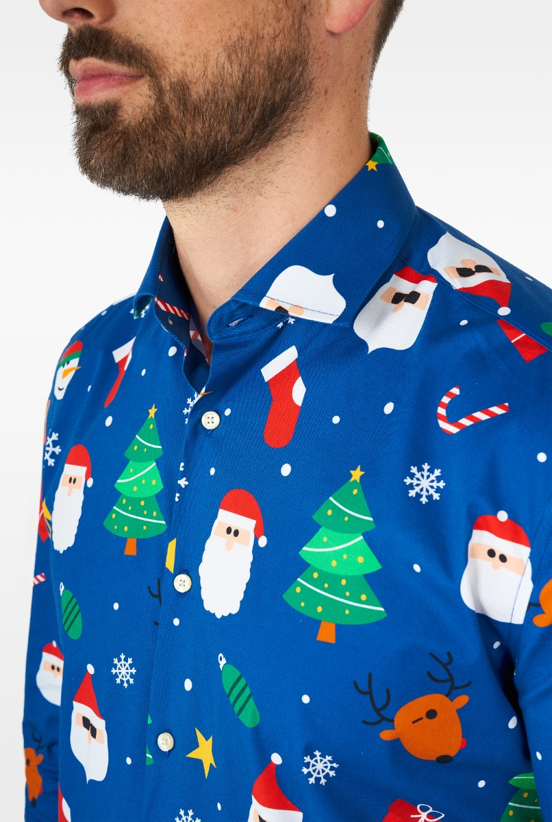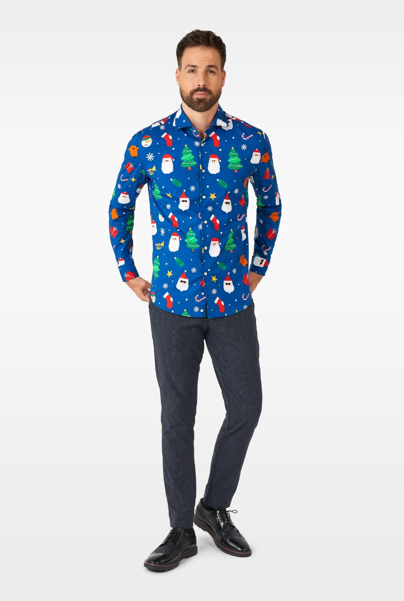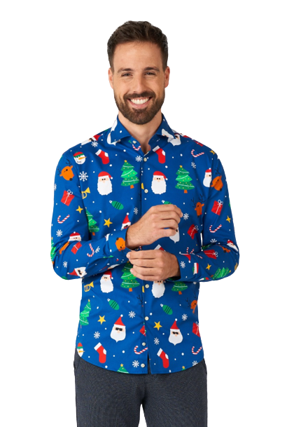 Do you want to look like a gift this season? Look no further than this gift wrap paper print suit. It has Santa, a reindeer, a Christmas tree, and glittering stars, all it needs is you wearing it!