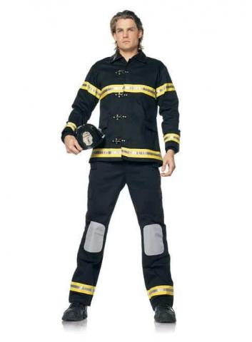 The deluxe Fire Chief costume is sure to be a fire stopper. Costume includes a black buckle front jacket with hidden zip and reflective tape and patch on elbow to represent elbow pads. It also includes a pair of comfortable elasticated black zip/button close trousers with reflective tape at the bottom of trousers and a grey knee patch