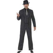 Gangster Suit includes pinstripe jacket, matching trousers, shirt front and white tie.