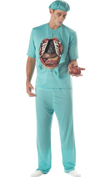 Have a Heart Costume includes a green top with sculpted plastic chest piece and a removable heart. Costume also includes a pair of green trousers with elasticated waist, and a matching hat.