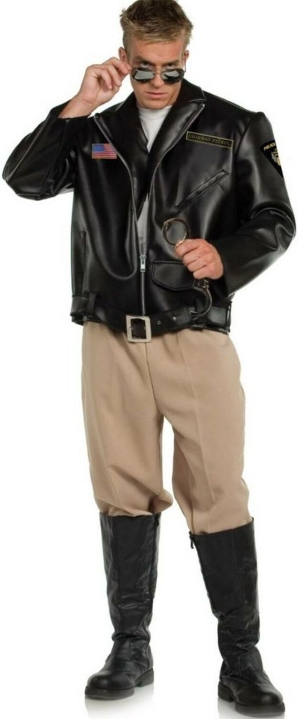Respect our Highway Patrol costume, included in this costume is a zip front embroidered jacket with attached belt, buckle and a Highway Patrol patch on jacket. Also included is a pair of beige trousers.