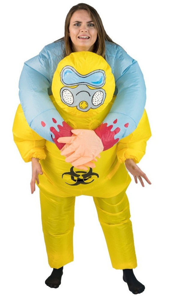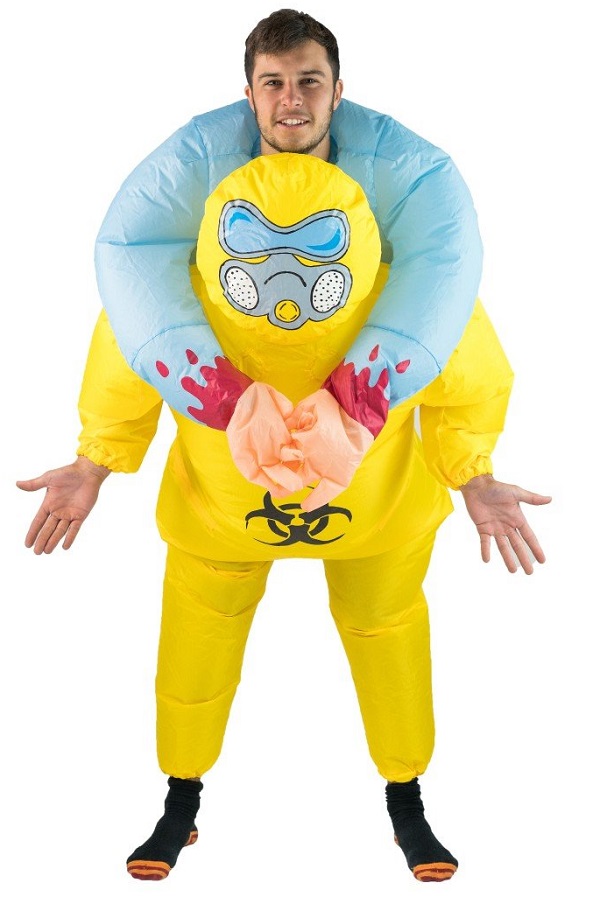 Beware of becoming a biological hazard in our Biohazard costume! By wearing it, you are at risk of having the best costume at the party! This original costume is perfect for Halloween or Carnival season! Suit up with our blow up outfit! This easy to put on one piece costume features a battery operated fan to inflate the costume and lasts up to 7 hours.