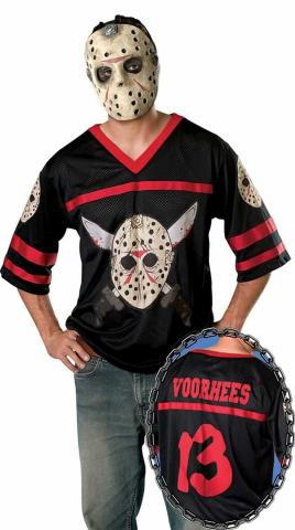 Friday the 13th Jason hockey jersey with mask logo on front and the number 13 and Voorhees printed on back. A mask is also included.