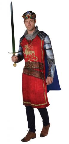 King Arthur costume includes a printed tunic with a detachable cape. To complete the look a crown is also included.