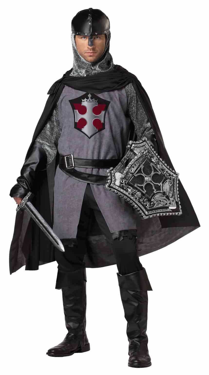 King's Crusader Costume includes a grey coloured tunic complete with a red cross screen print at front and faux metallic sleeves.
