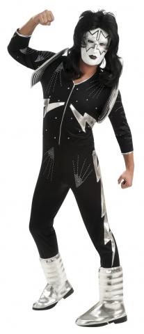 The Spaceman Costume is part of our costumes inspired by KISS - the famous hard rock band. The Spaceman costume includes a one piece black and silver jumpsuit and a pair of silver boot tops.