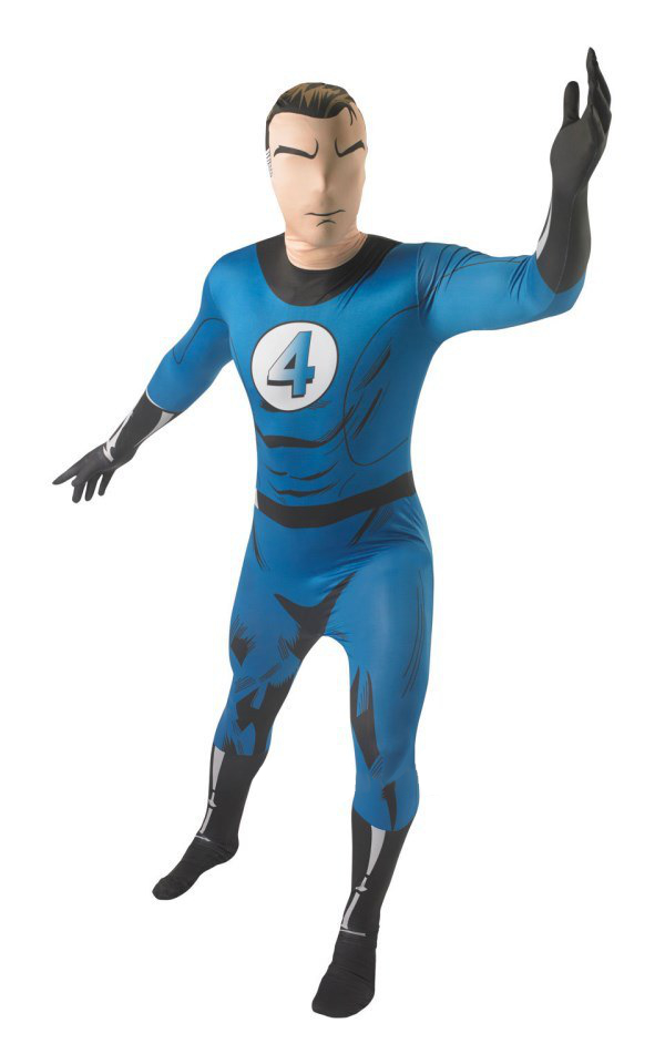 Marvel Mister Fantastic 2nd Skin Costume consists of a one piece stretch bodysuit with neck opening so the hood can be taken on and off easily. The bodysuit is see through, breathe through and drink through, making it a fantastic festival costume.