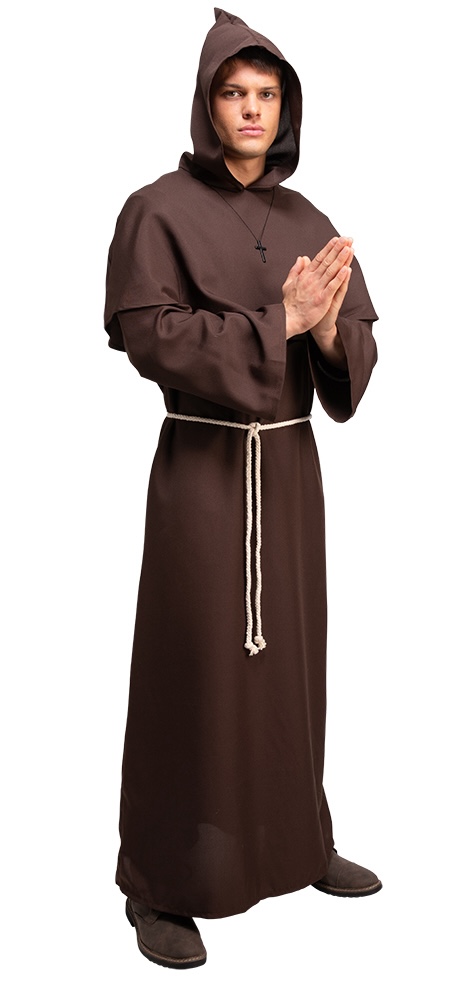 Transform into a humble monk with our Brown Monk Costume! This classic outfit includes a flowing brown cloak, a matching hood, a rope-style belt, and a cross accessory to complete the look. Perfect for Halloween, historical reenactments, or religious-themed events, this costume embodies simplicity and spirituality. Whether you’re recreating a medieval monk or just looking for a unique costume, the comfort and authenticity of this ensemble will ensure you stand out at any event.