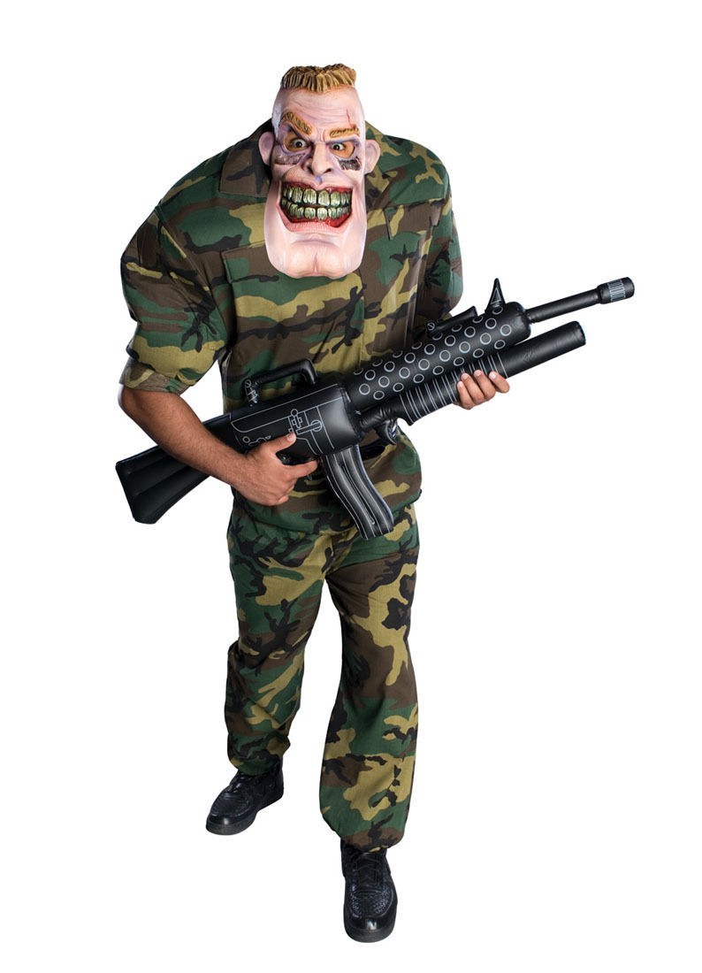 The Corporal Punishment is an intimidating character with an over-sized presence. Consisting of a big mask head with crew cut and battle readiness. Also included is a camouflaged military jacket with ammo which is sure to create a larger-than-life presence with a definite commando feel.