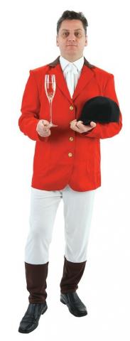 Fox Hunter costume includes a red jacket with gold button detailing. Also included is a pair of trousers and a white tie. To complete the look a hat is also included, please note shirt is not included.