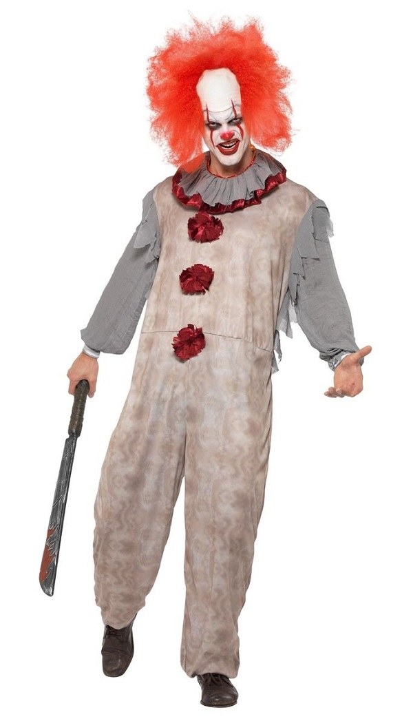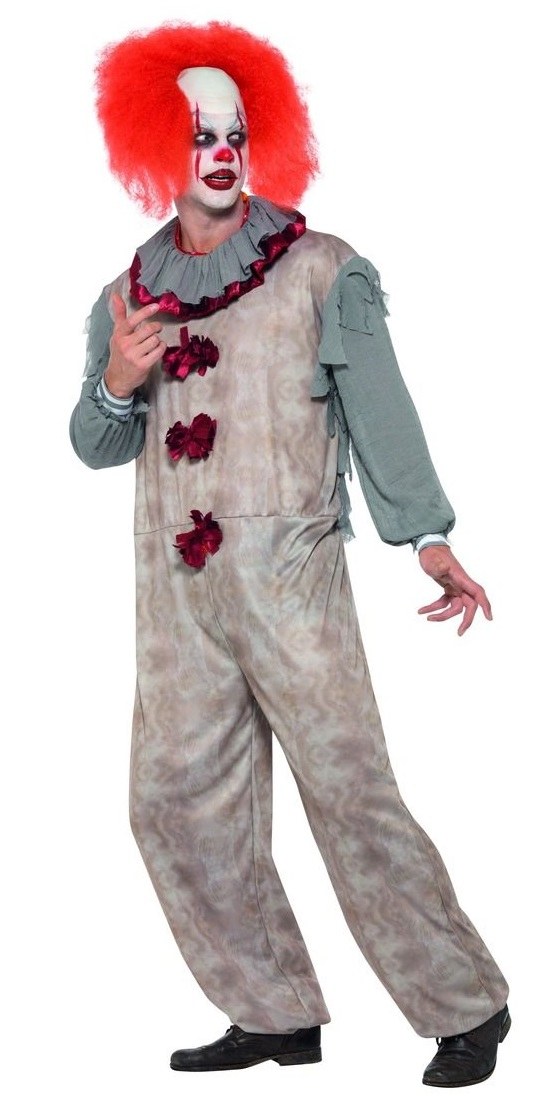 Vintage Clown Costume includes a one piece jumpsuit with a neck ruffle.
