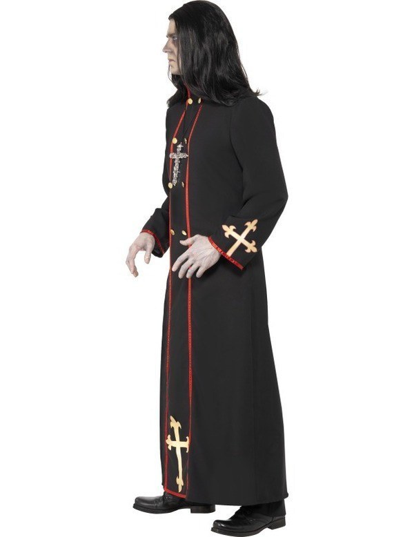 The eerie Minister of Death Costume features a long, black and red robe with gold button detailing and printed crosses.