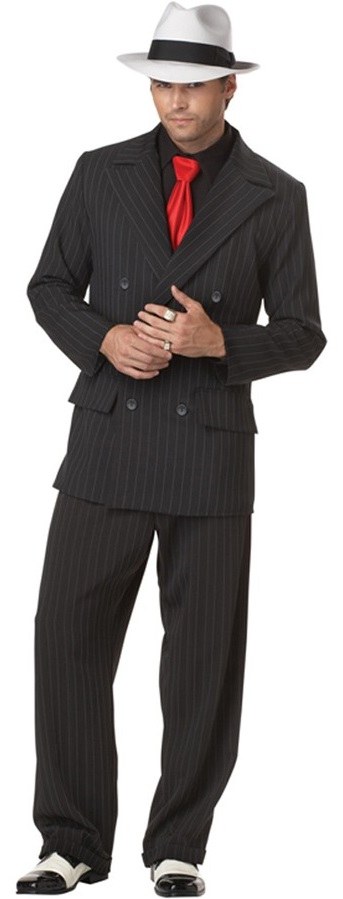 Mob Boss Costume includes a pin striped jacket with button detailing and a pair of matching trousers. Costume also includes a black shirt with a red tie.