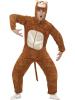 Adult unisex Monkey Costume includes a textured brown jumpsuit with beige stomach, an attached hood with Monkey face.