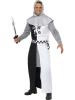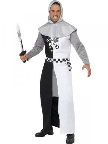 This fully licensed costume includes a black and white robe with attached chain mail look sleeves and a chain mail look over sized collar with hood. Also included is a black and white checkered belt.