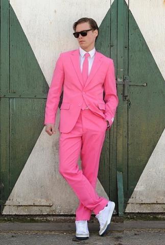 Look pretty in pink with this handsome Mr. Pink Oppo Suit. The Mr. Pink suit is a three piece costume with a pink jacket and matching pink trousers, there is also a pink skinny neck tie to complete the look.