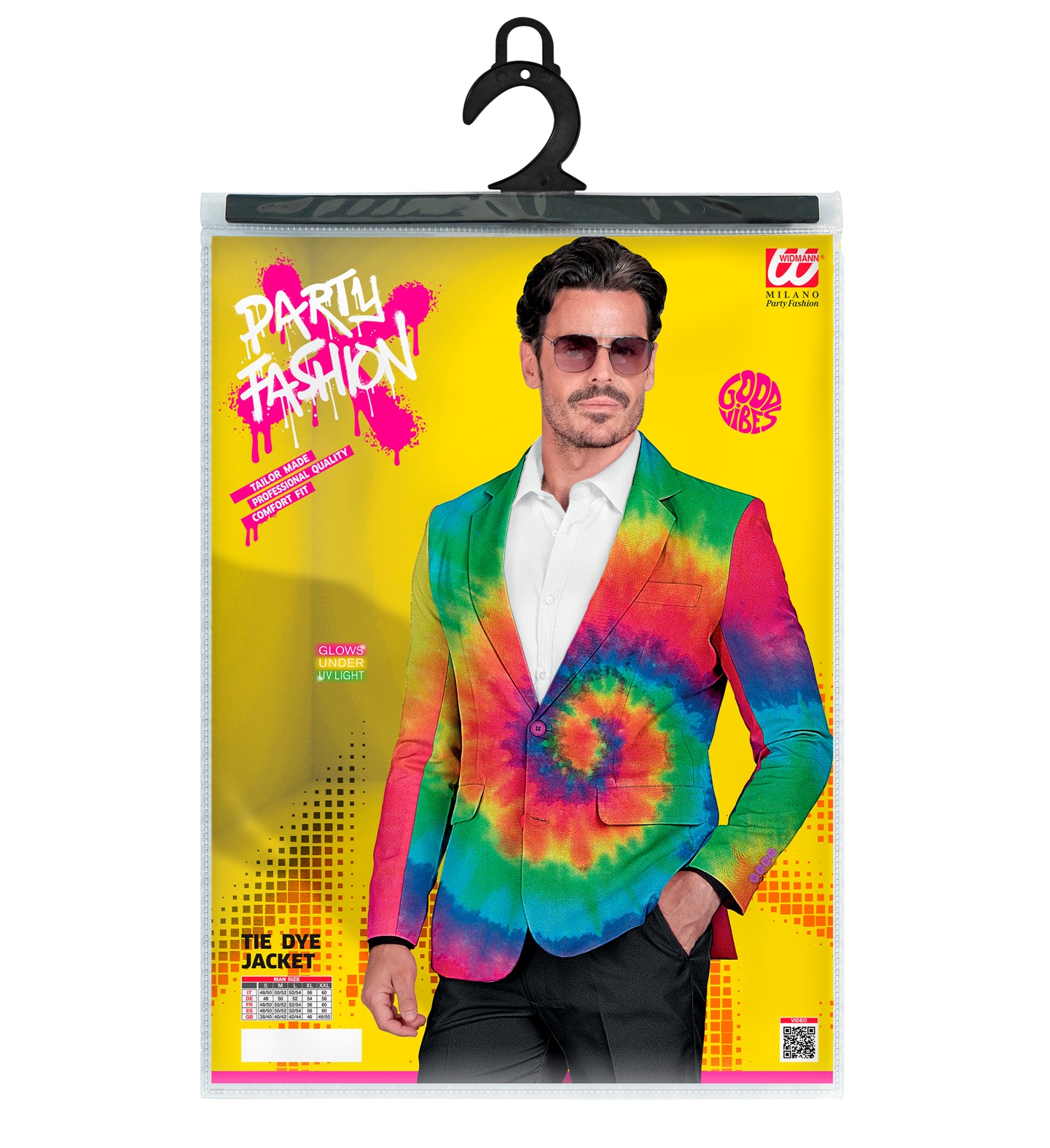 Get your party started with this Neon tie dye jacket which glows under UV light!