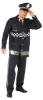 Policeman costume includes a jacket with a shirt bib, trousers and police hat.