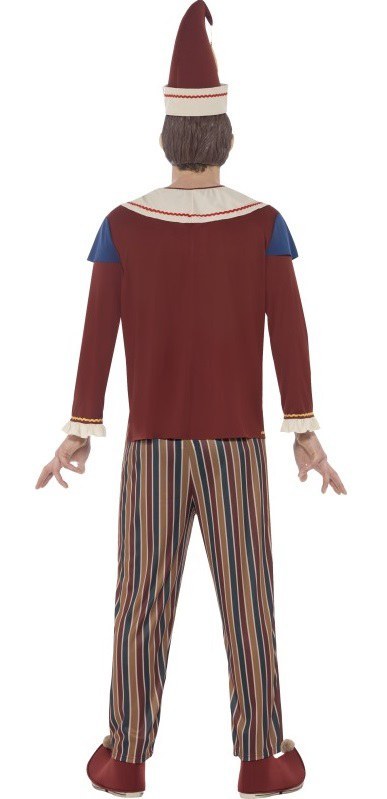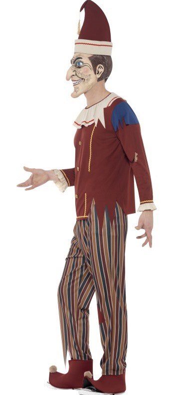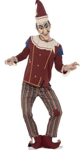 Possessed Punch Costume includes a pair of multicoloured striped trousers with an elasticated waist and a long sleeved top with collar. Also included is a pair of boot covers and a hat.