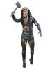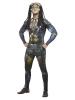 Adult Alien Costume consists of a black full length robe with an oversized collar with grey and black stripes. The scary alien costume also includes a latex overhead mask in green with black eyes and alien face detailing and a pair of alien gloves.