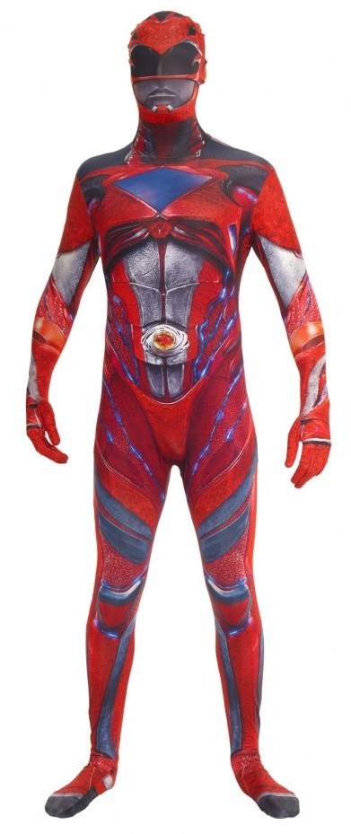 The Deluxe Red Power Ranger Morphsuit is a printed suit with attached mask and hands.