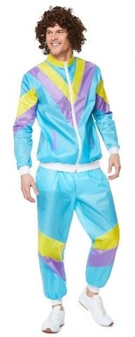 Included is a blue, purple and yellow matching tracksuit top and bottoms.
