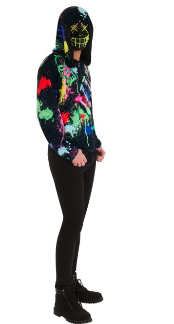 Step into the shadows in full color with the Sinister Street Artist Adult Costume – a bold fusion of street art and spooky style. This eye-catching outfit features a vibrant, graffiti-inspired hoodie splashed with urban colors, making you look like a walking mural straight out of the underground scene.