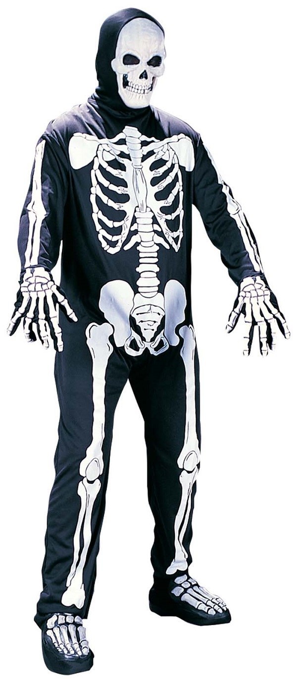 Skeleton Adult Costume includes a black jumpsuit with printed bones.