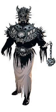 The Skull Punisher Costume is a one piece robe. The top is black with tattered ends and grey on the bottom with similar jagged ends.
