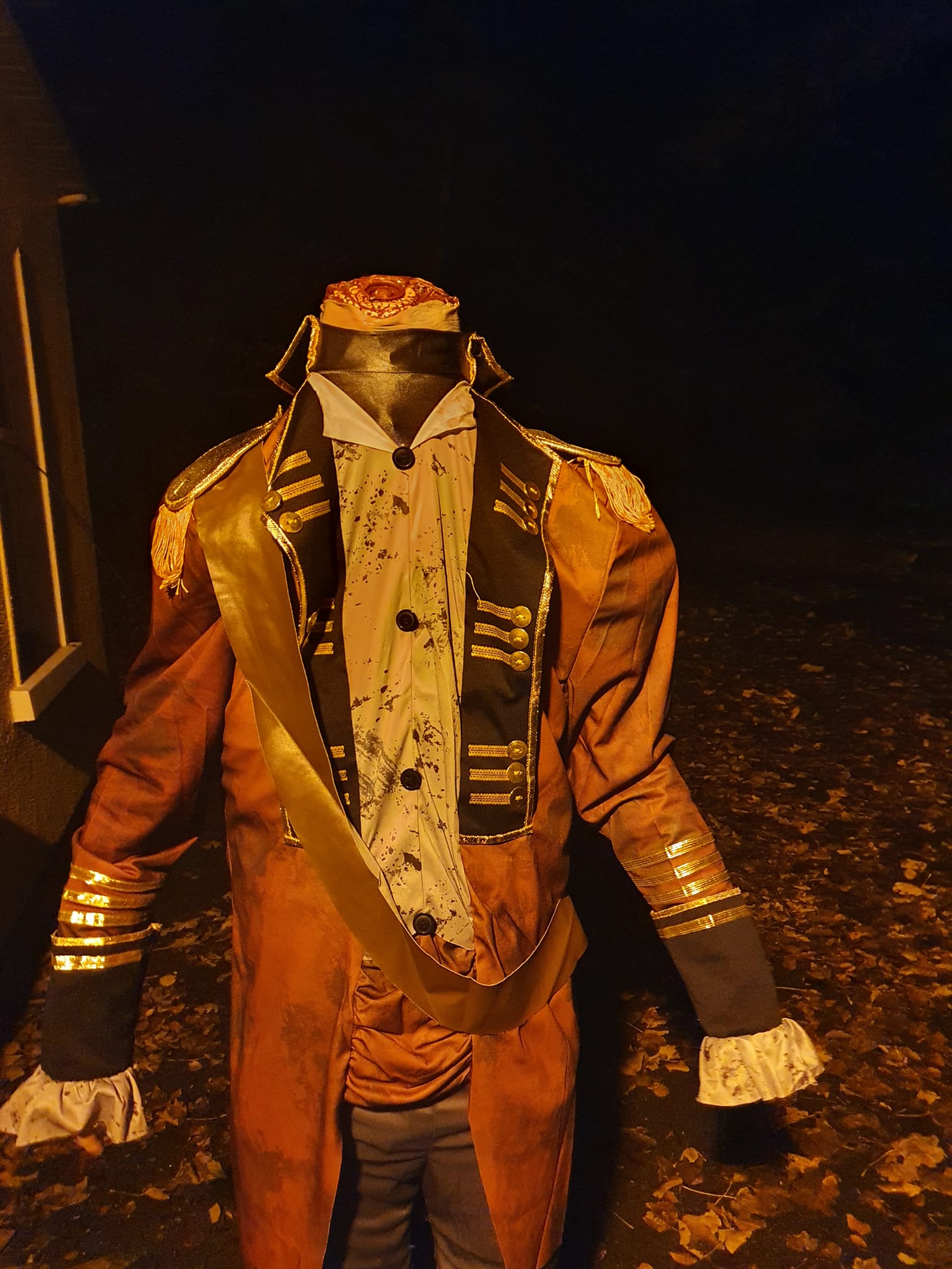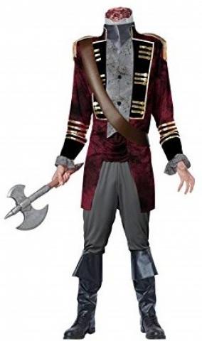 Transform into TV's urban Legend with our Sleepy Hollow Headless Horseman costume. Included in this mysterious costume is a jacket with gold button detailing and an attached waistcoat and a cross belt.