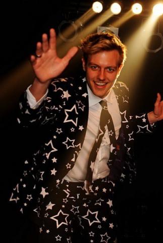 Starring Men's OppoSuit Stand tall, loud and proud in this excellent Star suit, suitable for any occasion. The sophisticated fun look consists of a black jacket with white star design and there is matching black trousers. The final piece of the look is completed with a skinny black tie also featuring a white star design.