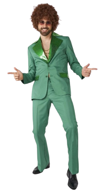 Bring the '70s to life with the bold SuitMeister Disco Suit in Green! Perfect for costume parties and disco nights.