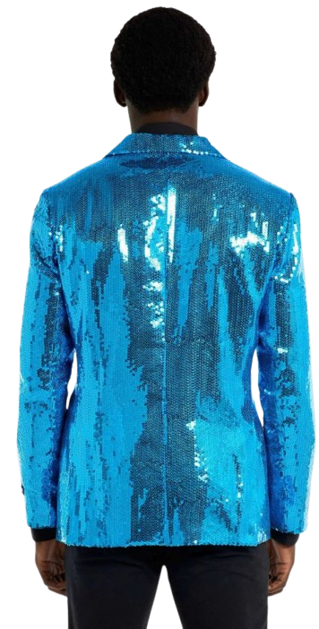 This dazzling, eye-catching blazer features all-over blue sequins, perfect for adding flair to any event.