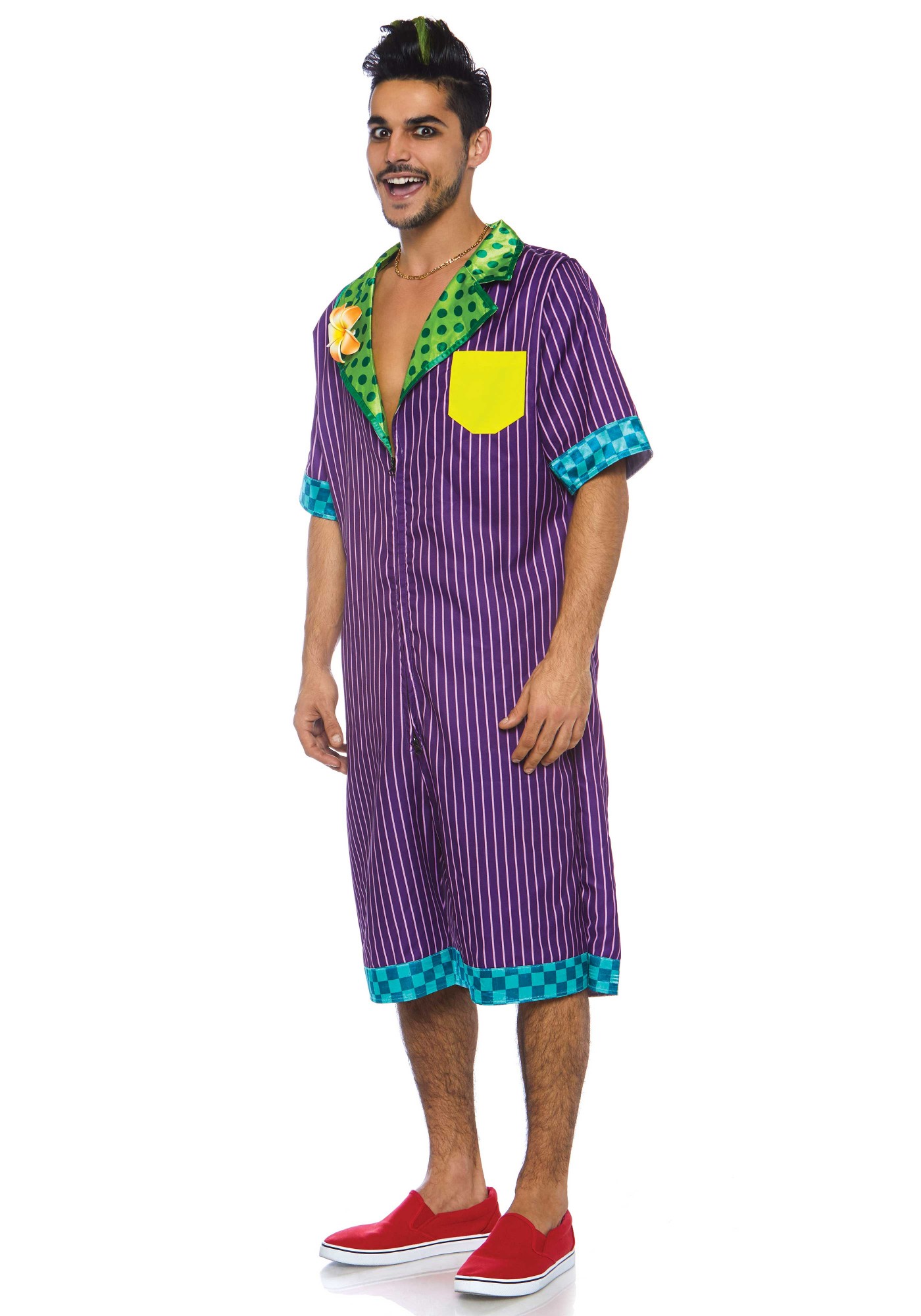 Dress up as Super Villain with this great quality Joker costume. Included in this costume is a jumpsuit with short sleeves and a bandana mask.