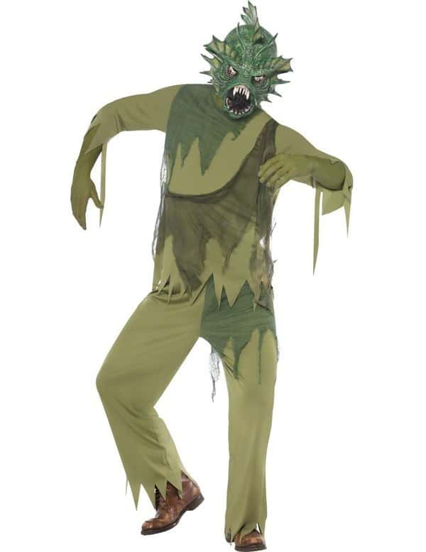 The Swamp Monster costume includes a green long-sleeved top with dark green gauze drapes and a pair of green trousers.