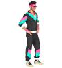 The 80's Shell suit includes a zip up tracksuit jacket and a pair of matching tracksuit bottoms. This 80's look feature trousers with an elasticated waist.