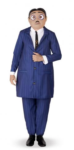 The Addams Family Gomez Costume includes a shirt, trousers and tie. To complete the look a mask and jacket is also included.